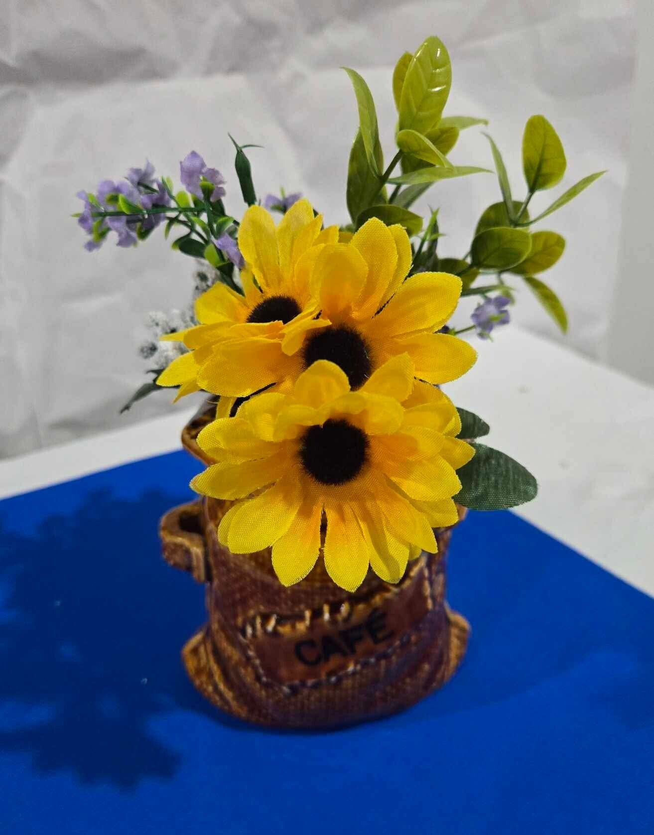 Pot en céramique en forme de poche de café. Soupçon de jaune et de vert pour égayer la pièce concernée.